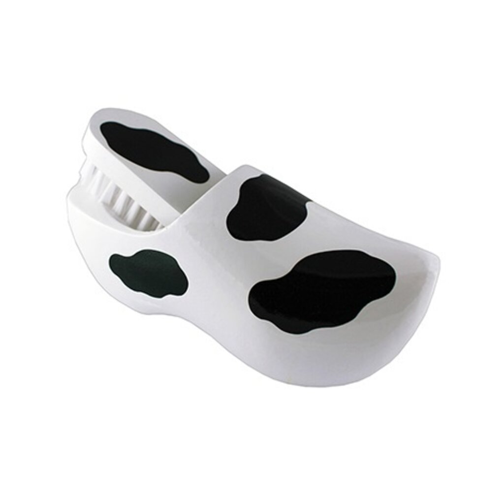 Original Souvenir Clog mit einem Bürste in der Farbe Weiß. Sie sind 14 cm lang und mit schwarzen Flecken einer Kuh versehen. Außerdem sehen sie wunderschön aus und sind äußerst funktional. Mit der Bürste können Sie leicht die Haare Ihrer Tiere aus Ihrer Kleidung entfernen und die Bürste kann sogar zum Polieren Ihrer Schuhe verwendet werden. Auf der Rückseite des Souvenir Clogs befindet sich ein Montagehaken, mit dem Sie ihn problemlos als Dekoration an eine Wand hängen können.