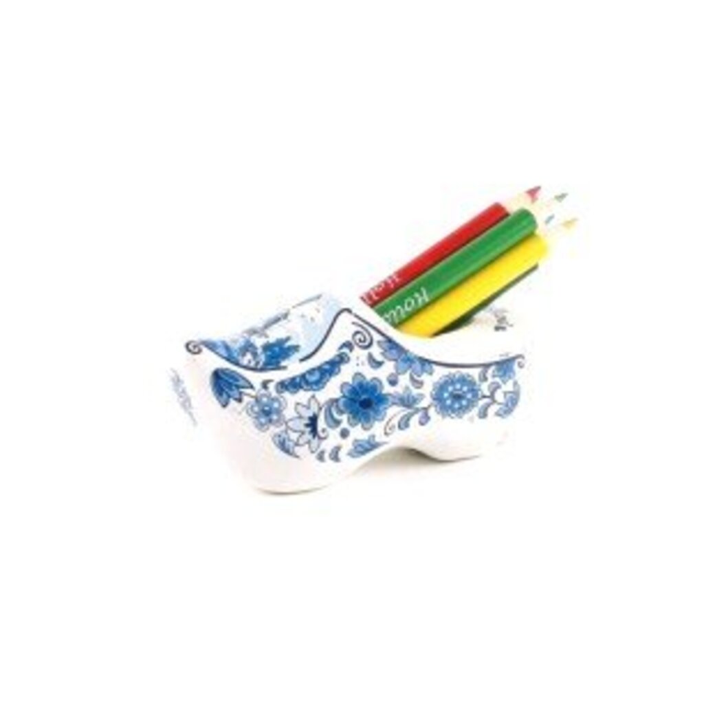 Der Clog ist die Farbe Delfter Blau mit einer Holländischen Windmühle