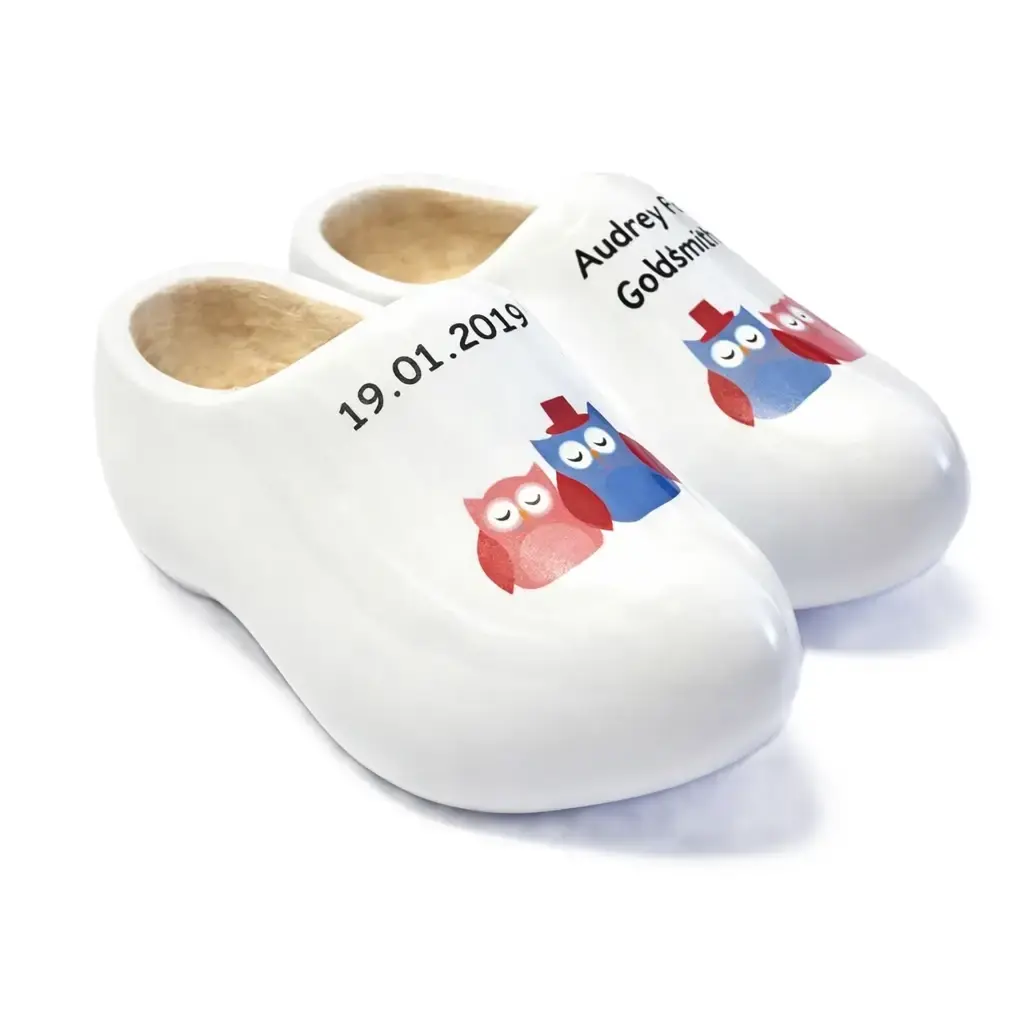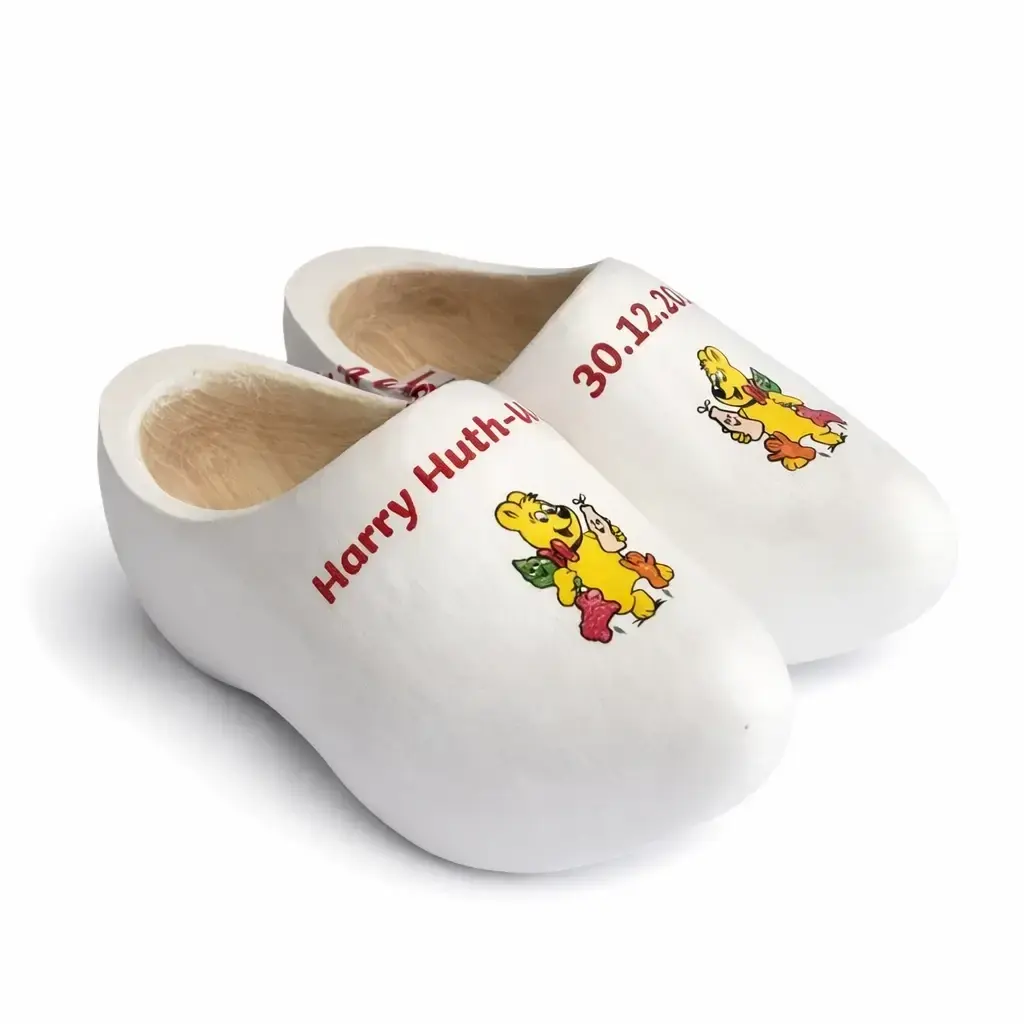 Geburtsclogs sind kleine Holzschuhe, die speziell zur Erinnerung an eine Geburt hergestellt werden. Sie werden oft personalisiert mit: