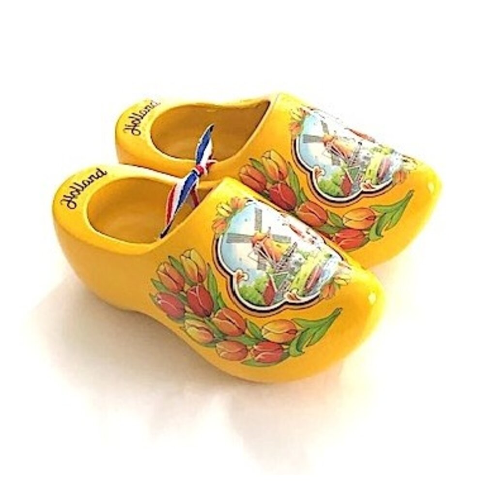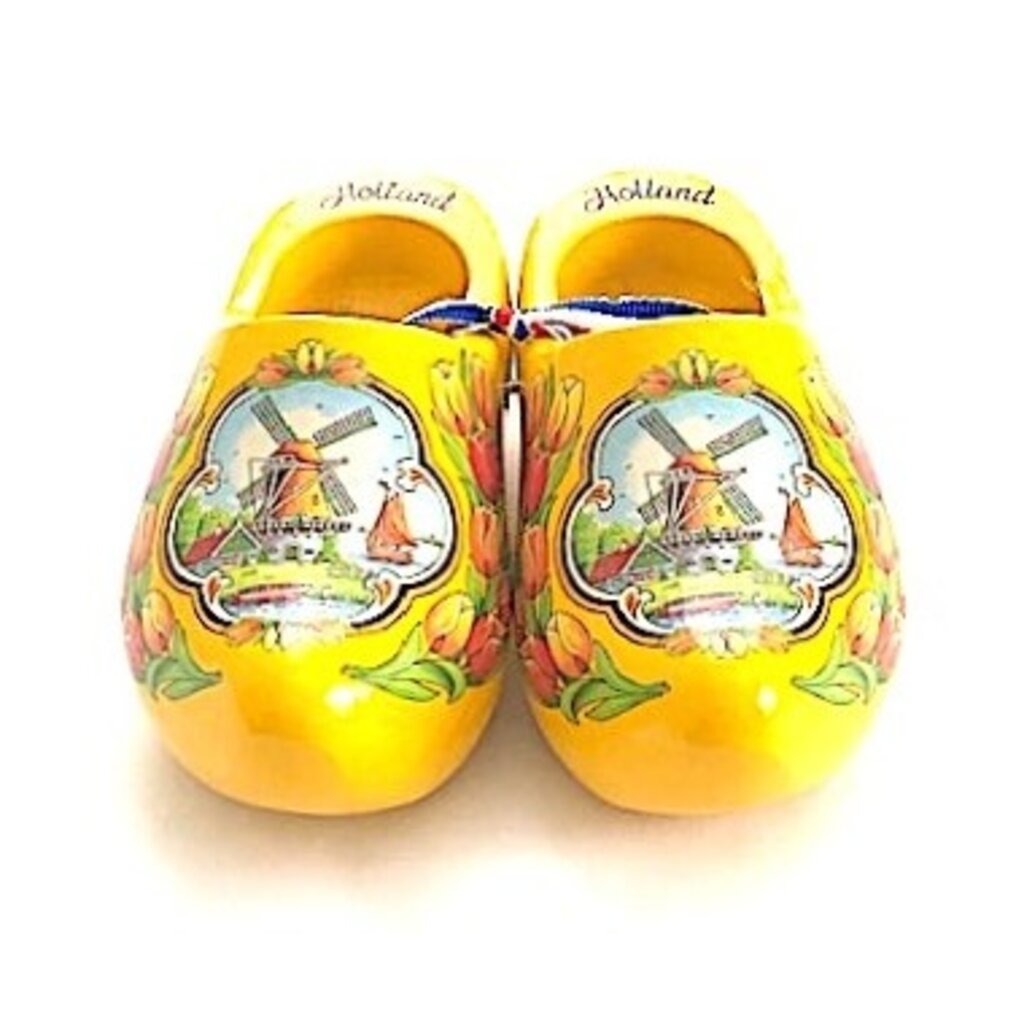 Bitte beachten Sie: Diese gelben Souvenir-Clogs mit dem Bild einer Windmühle können nur als Dekoration verwendet werden, sind aber keine Clogs zum Tragen.