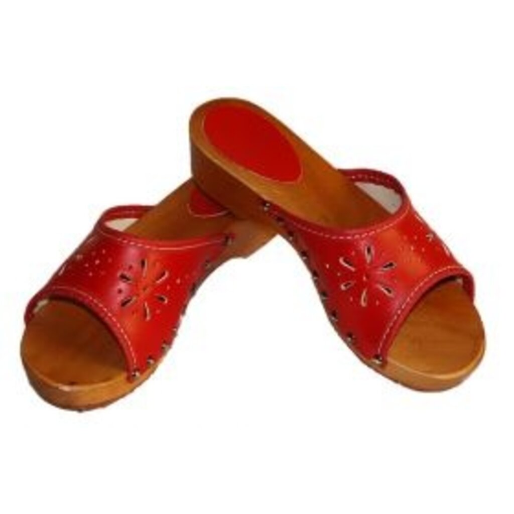 Holzsandalen mit rotem Obermaterial