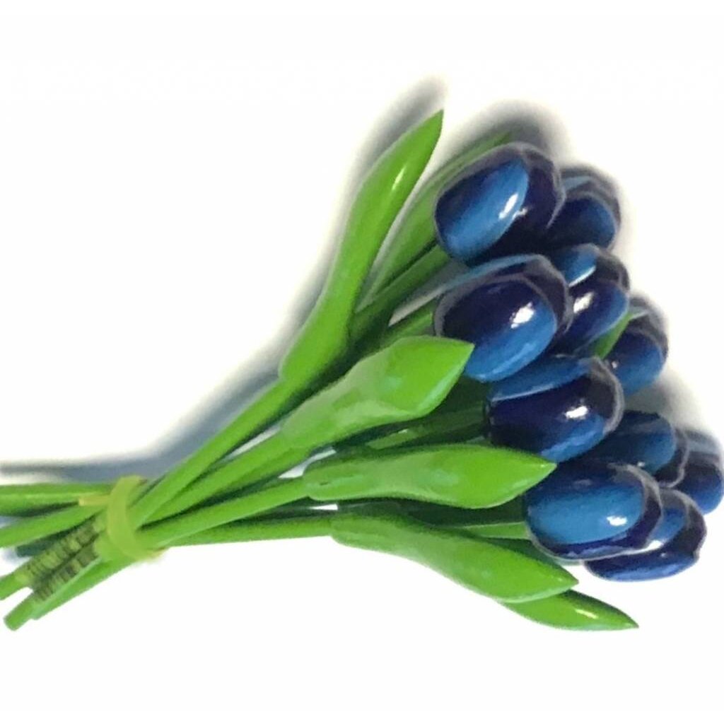Die schönsten blauen Holz Tulpen in einem Strauß. Die künstlichen Blumen sind nicht von der Realität zu unterscheiden und eignen sich ideal zum Platzieren in einem Wohnwagen. Der große Vorteil ist, dass Sie sie nicht gießen müssen und diese Blumen immer schön bleiben. Sie nehmen auch sehr wenig Platz ein und der Raum wird sofort viel glücklicher.