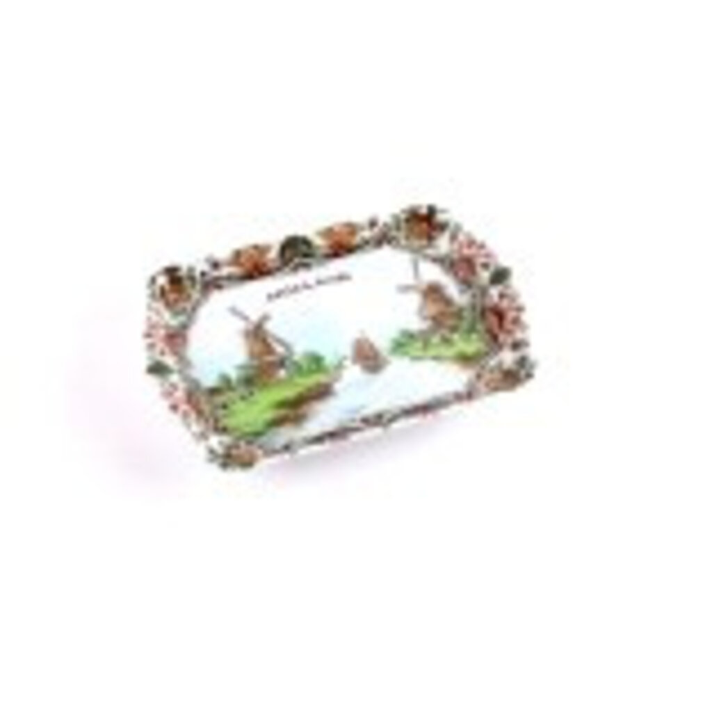 Die Platte ist mit einem Bild von einem Segelboot mit einer Windmühle zur Verfügung gestellt