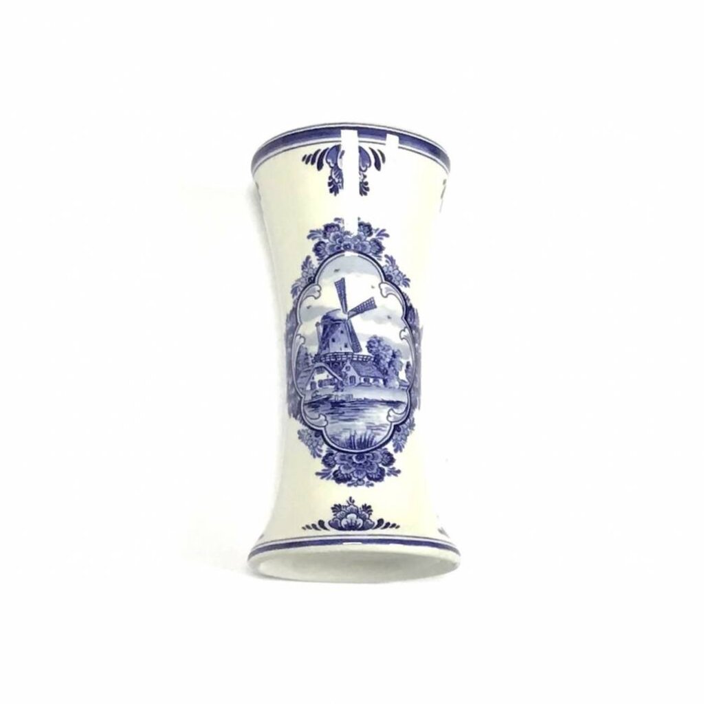 Tulpen aus Holz in Mischfarben in einem Delft blauen Vase