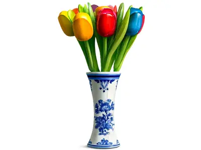 Kaufen Sie Tulpen aus Holz in einer Delfter Vase zu einem wettbewerbsfähigen Preis.