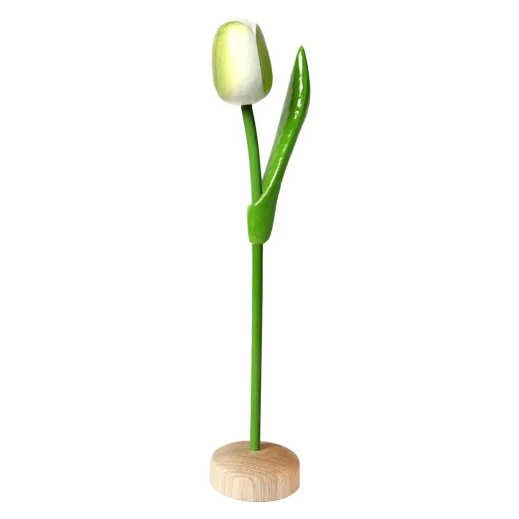 ◆ | Farbige Tulpe aus Holz | Weiß mit grünem Akzent |