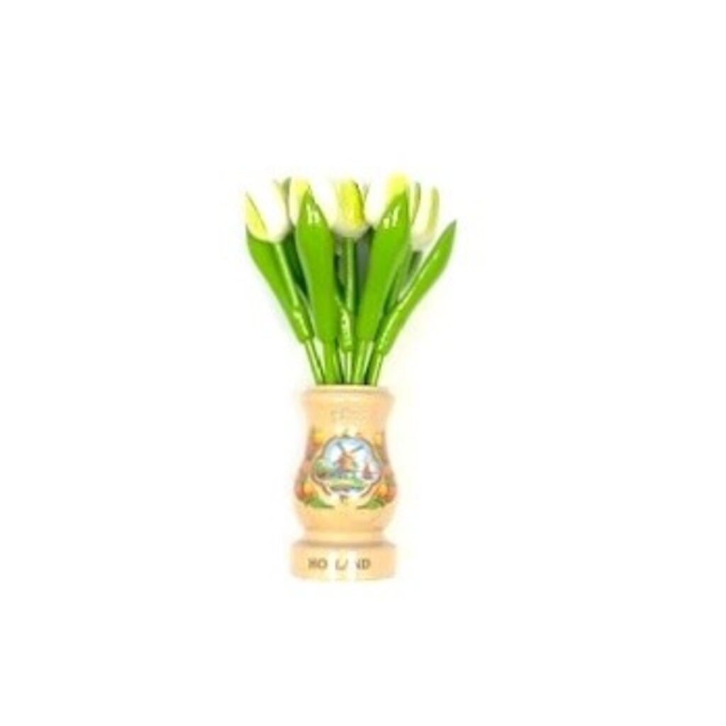 9 weiße Holztulpen in einer tranparanten Holzvase. Die weißen Tulpen lassen sich gut in Ihrem Gartenhaus oder auf Ihrer Veranda platzieren. Sie blühen sowohl im Sommer als auch im Winter, sodass Sie sie das ganze Jahr über genießen können. Dies ist eines der Produkte, die Ihnen der niederländische Clog Store ab Lager liefert. Wenn Sie diese weißen Holztulpen auch genießen möchten, bestellen Sie sie noch heute online und sie werden schnell verschickt.