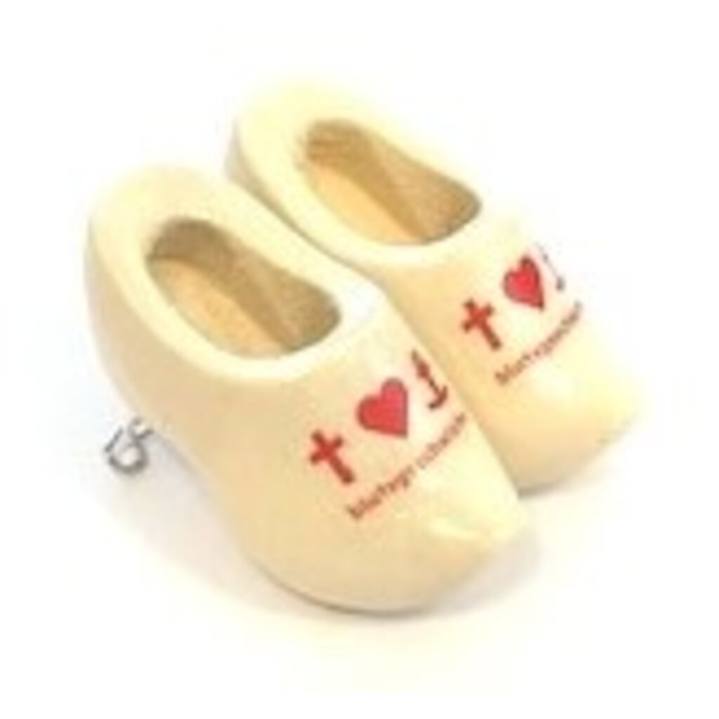 When you are at a fair and want to give a nice memory to your regular relations, these brooch clogs with text are a nice give away.
