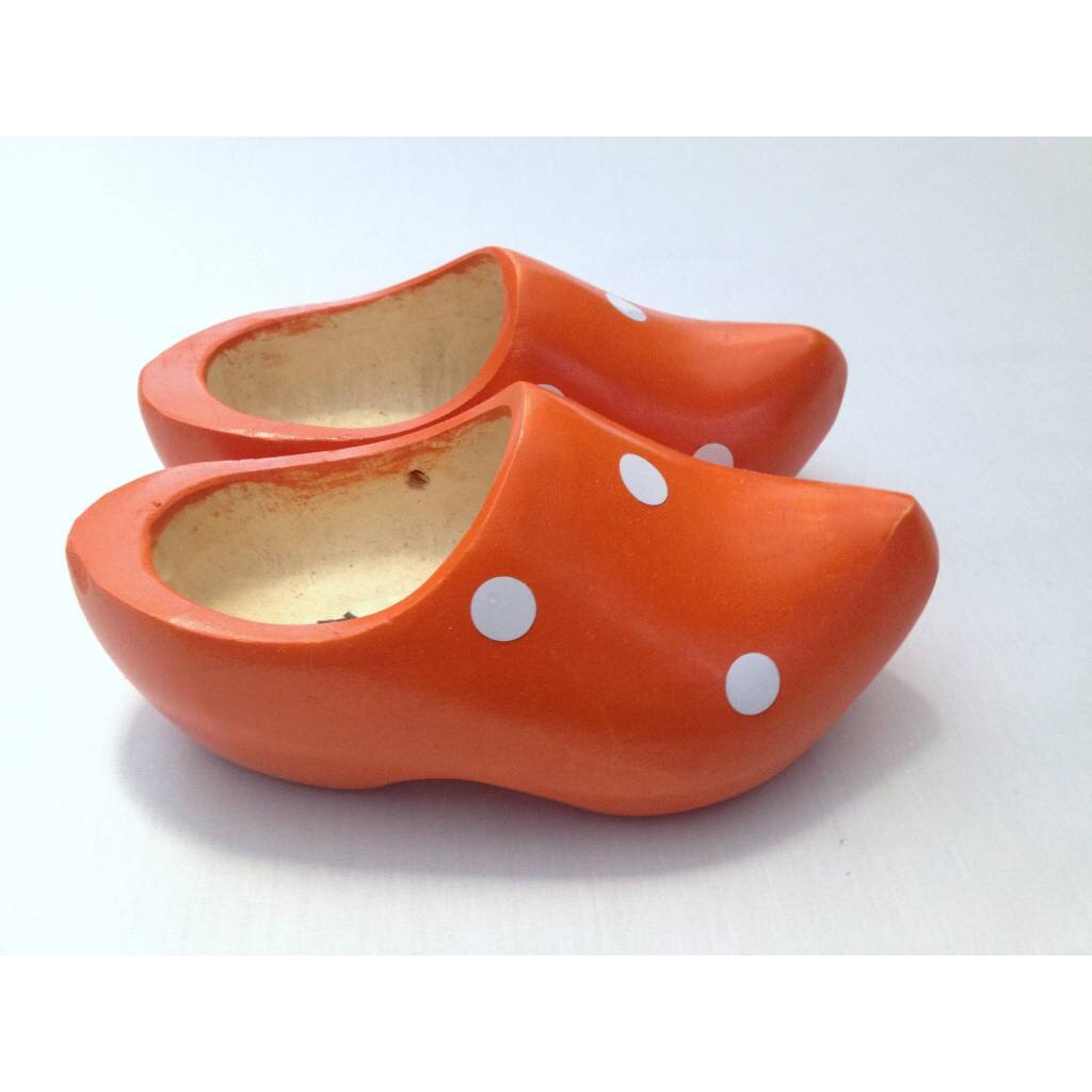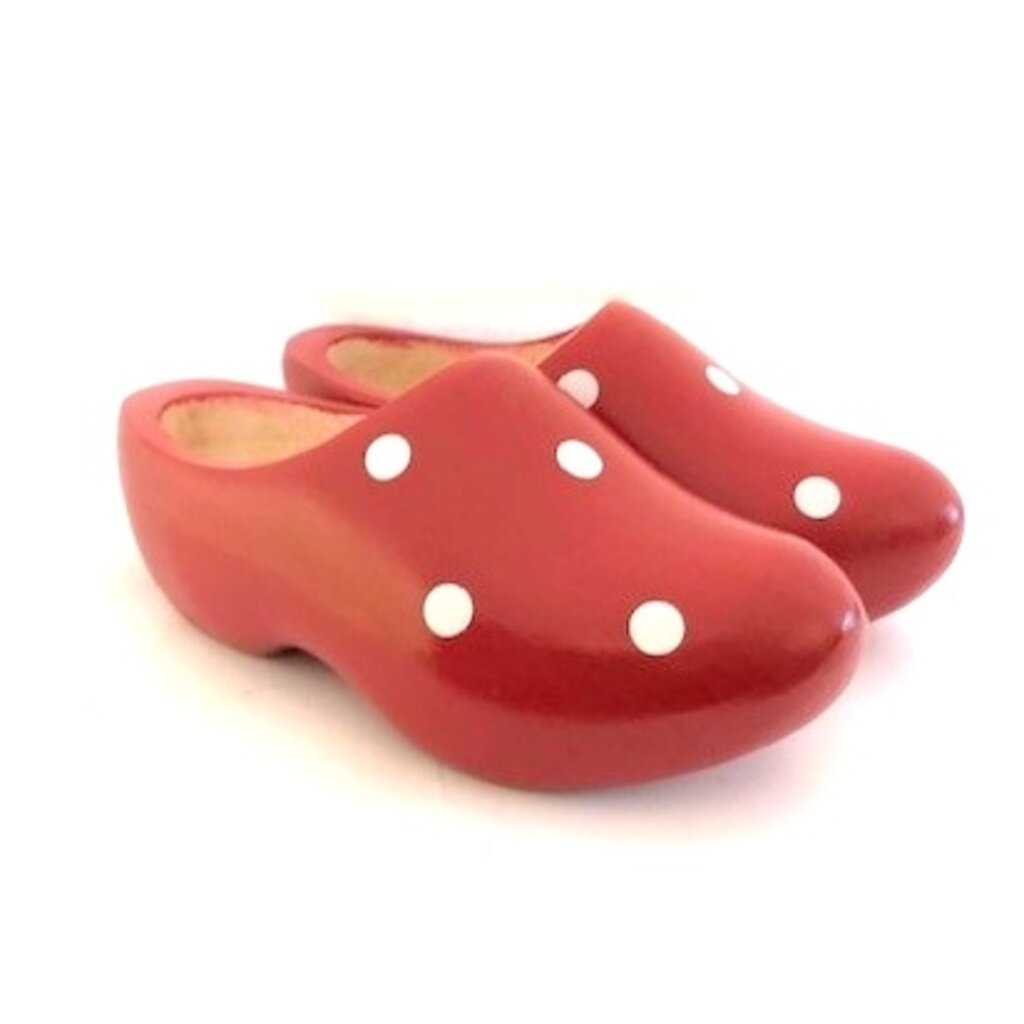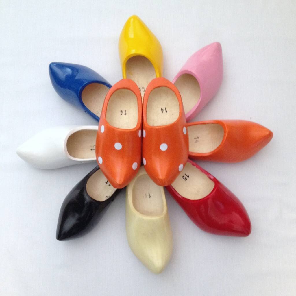 Nice wooden children's clogs, decorated with a beautiful white white dots. They are available in various colors and are provided with a vinyl sticker. Because of their good fit which fits nicely to the size of your foot, the children can walk on it wonderfully.