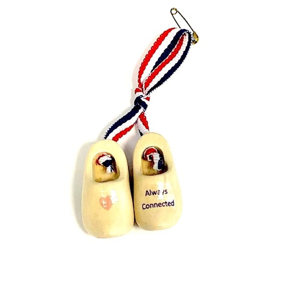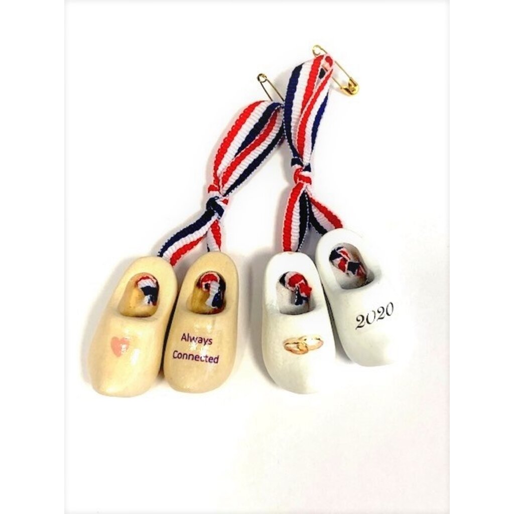 The corsage clogs are attached to each other with a red / white / blue ribbon with a small gold-colored pin so that you can easily attach them to the clothing.