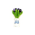 Bouquet of dark purple wooden tulips in a white wooden vase as a gift for an anniversary or birthday. What more can anyone imagine than these fun items. If you give a bunch of flowers, it will have died out after 1 or 2 weeks, but these wooden tulips will always retain their beautiful color.
