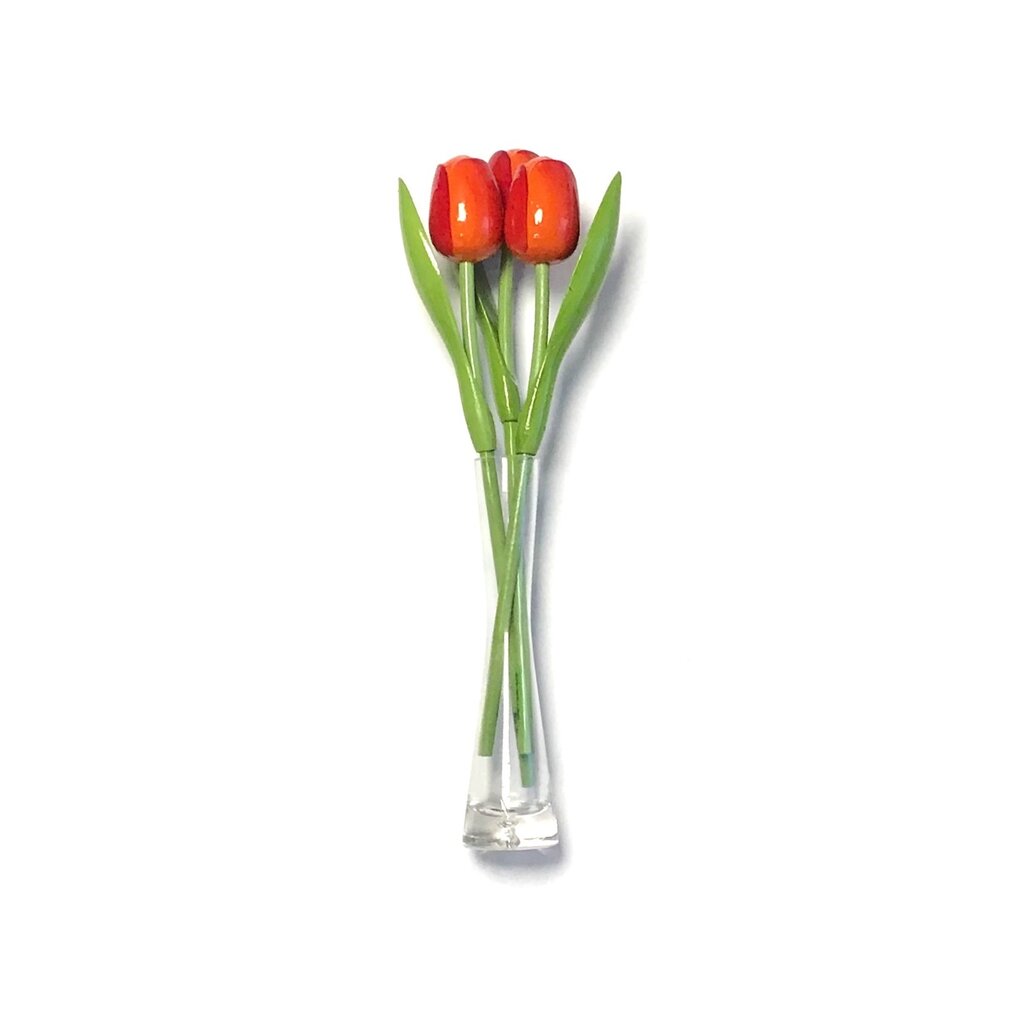 Orange Wooden Tulips in a Glass Vase – A Colorful Nod to Dutch Tradition