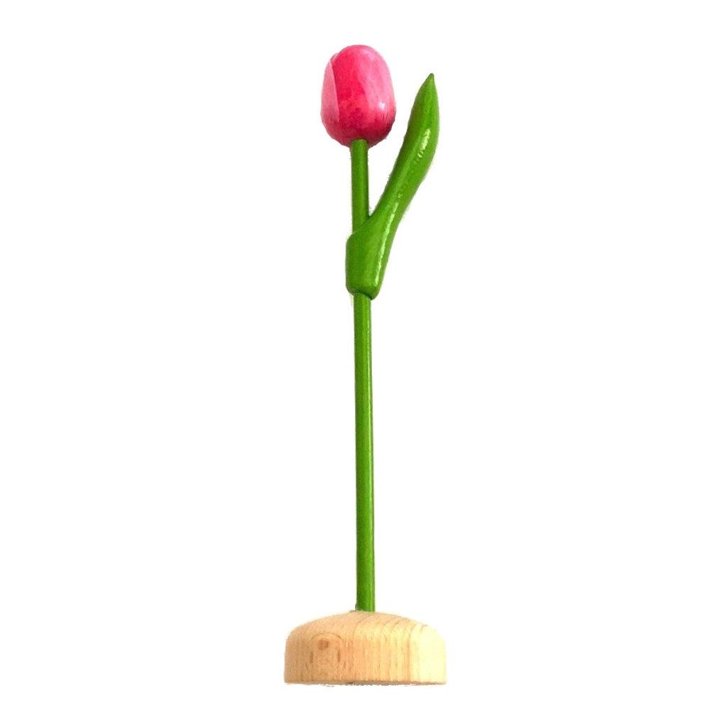 This wooden tulip on a stand is ideal for a desk, shelf, windowsill, or as a decorative piece in a child's room or gift shop. The combination of pink white makes this tulip a perfect fit for light, fresh interiors and romantic settings.