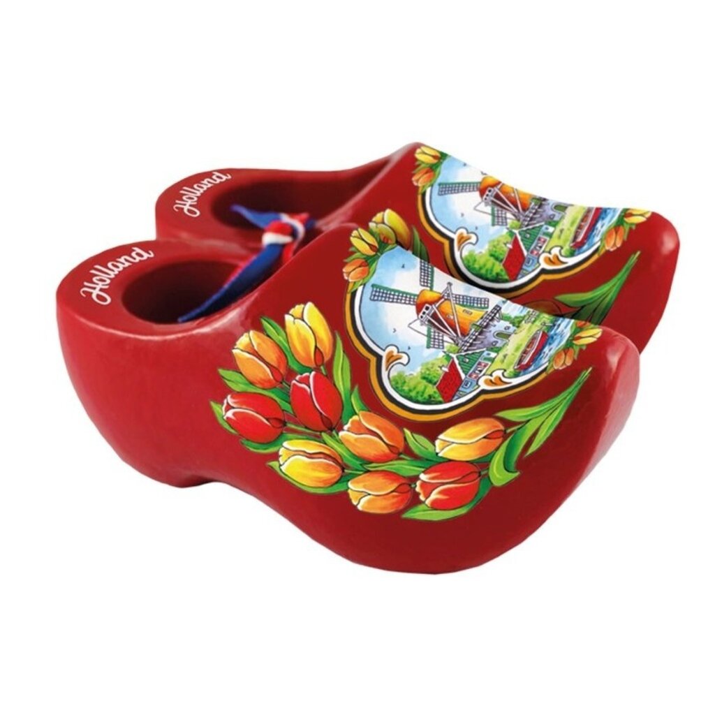 Looking for a striking and traditional Dutch souvenir? These 10cm red souvenir clogs are the perfect gift with a nod to Dutch culture. These wooden clogs are varnished in a deep red and often decorated with a typical Dutch motif such as a windmill, flowers, or a cow print.
