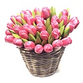 The length of the pink - white wooden tulips is 34 cm and they are painted in the most beautiful color pink - white. 50 pieces are placed in a wicker basket for an overwhelming look. A nice present for when you are invited to an opening of an office and do not know what to bring. They will remain prominent in the choir for many years to come.