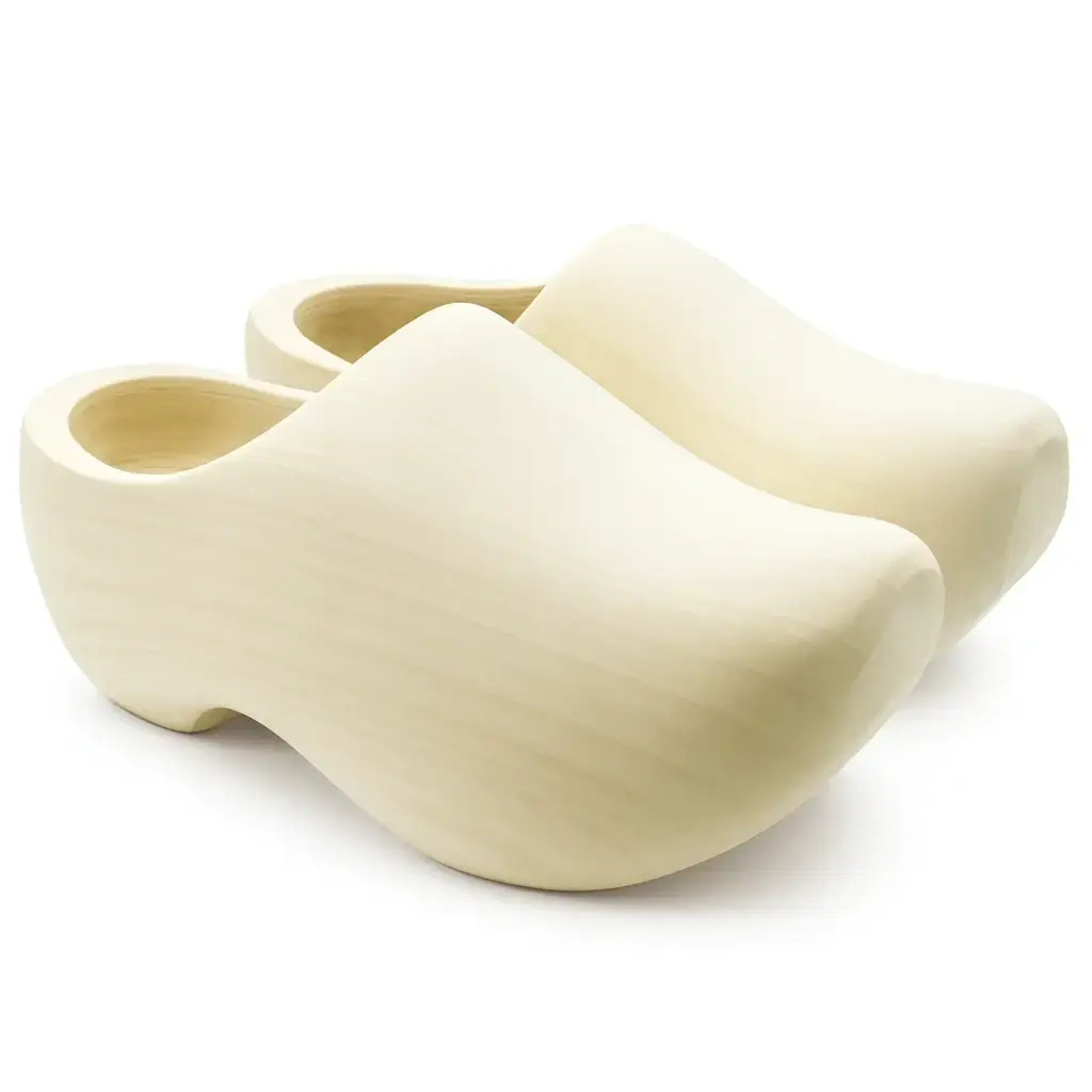 It clogs a sanded wooden spit nose that comes directly from the clog factory. Either: they are delivered unprocessed. You can choose to keep them so pure, but also lend themselves perfectly to your own creativity.