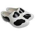 White children's wooden shoes with cow spots