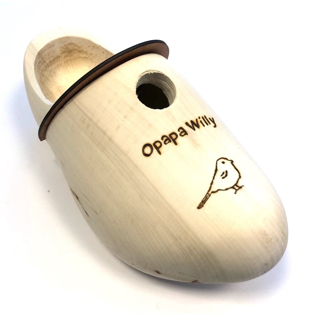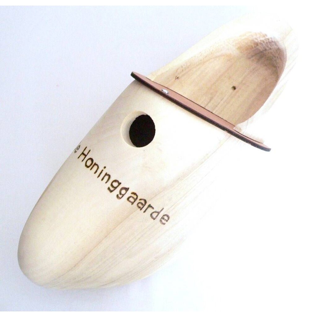 They are provided with a hole for birds (blue tits). They are nicely sanded but do not receive any further treatment with paint. Make sure the nest box is clean. If there is brood in the box, clean it in the autumn by removing the old nest and rinsing the clog with hot (boiled) water.