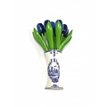 wooden tulips in blue in a Delft blue vase