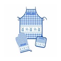 De set bestaat uit een schort, Ovenwant en een pannenlap