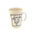 De mok is gemaakt van keramiek.