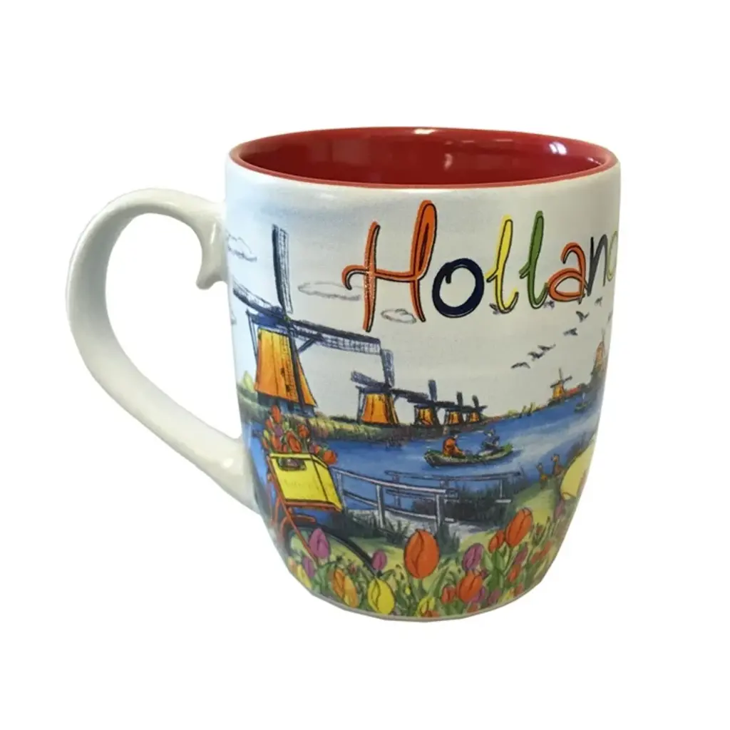 De mok is gemaakt van keramiek.