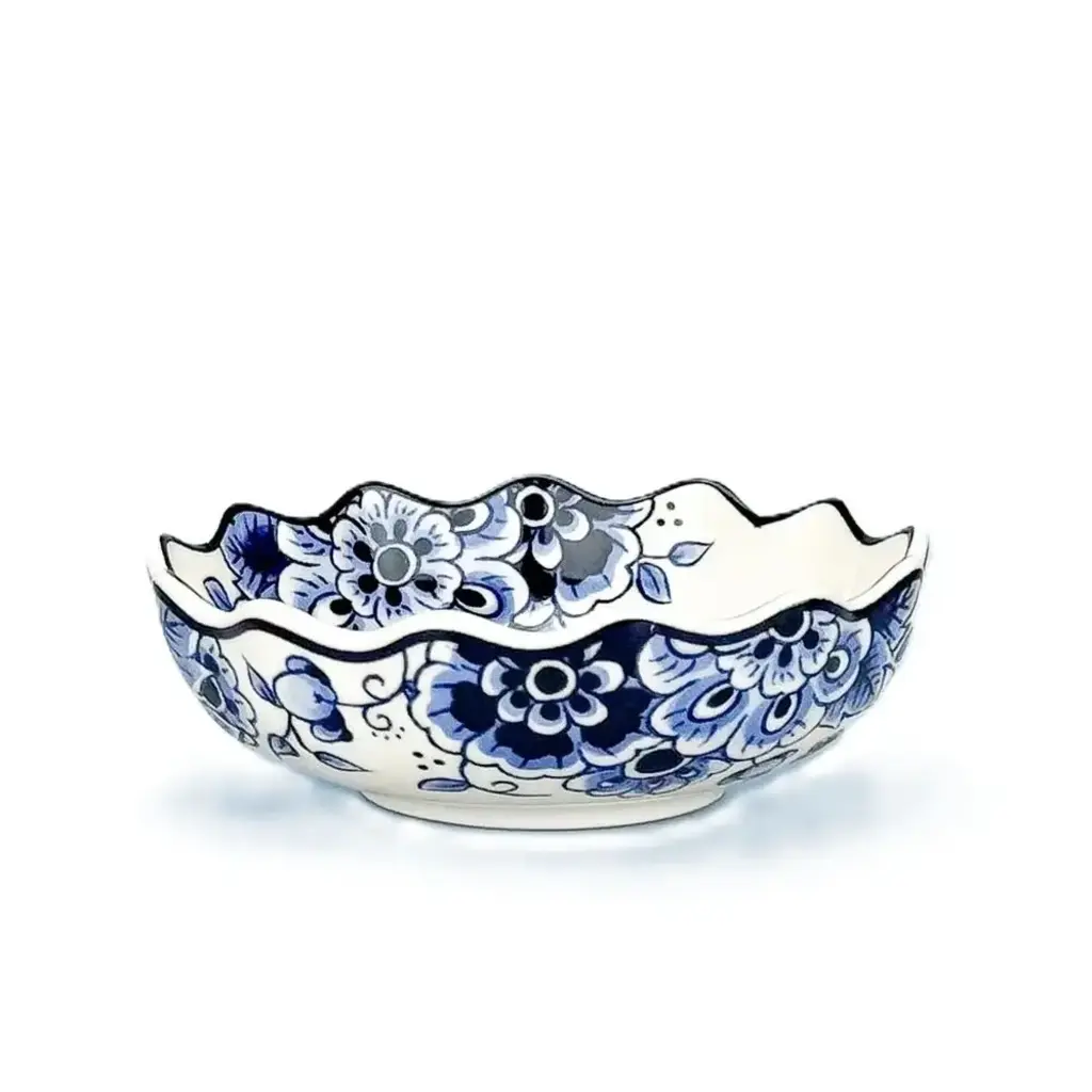 Deze Delfsblauwe keramiek kom met geschulpte rand is een stijlvolle combinatie van traditioneel vakmanschap en tijdloos Nederlands design. Het kenmerkende blauw-witte decor is geïnspireerd op klassiek Delfts blauw en maakt deze kom tot een echte blikvanger.