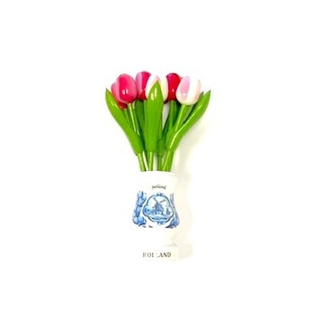 De mooiste gemengde roze houten tulpen in een wit houten vaasje. Deze kunstbloemen zij ideaal om in een caravan of tuinkamer te plaatsen. Je hoeft ze geen water te geven en deze kunstbloemen blijven altijd even mooi. Ze nemen weinig plaats in een caravan en de ruimte wordt meteen een stuk vrolijker.