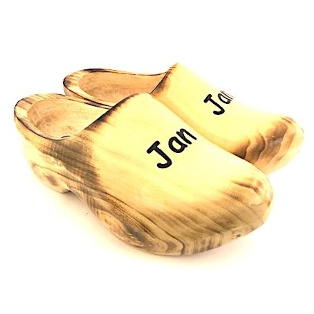 Draagklompen waarvan de buitenzijde met een gasbrander wordt gebrand zodat ze een gevlamd uiterlijk krijgen. Op de wreef wordt de klomp niet gebrand maar blank gehouden. Hierop wordt het door u aangeleverde naam en / of tekst aangebracht. Daarna worden ze voorzien van meerdere transparante laklagen.