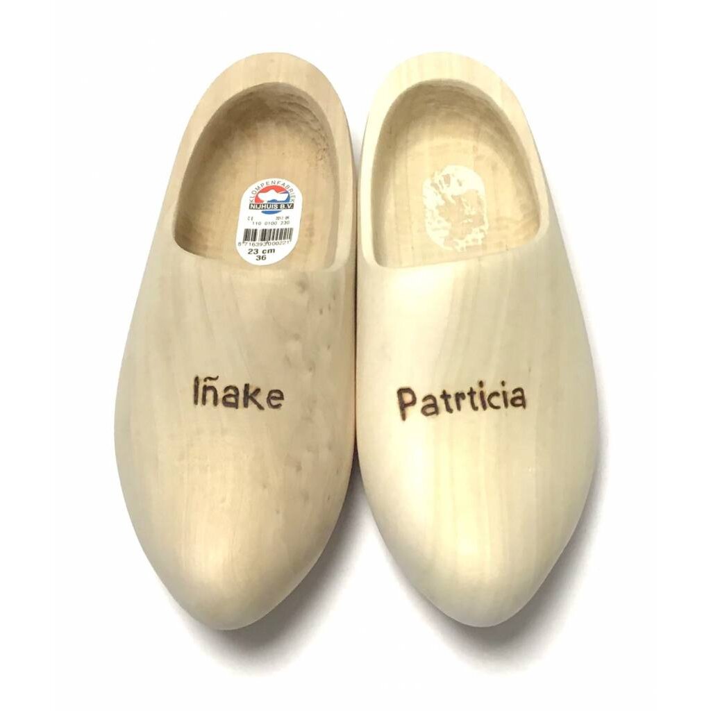 Ik wilde voor een vriend zijn verjaardag klompen kopen en heb toen deze met gegraveerde naar gekocht.