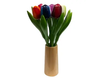 Houten tulpen in een design vaasje