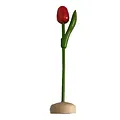 Kleine Oranje Houten Tulp op Voet. Hollands Vakmanschap in Miniatuur