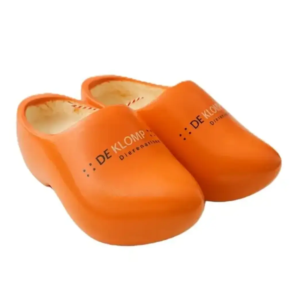 Leuke klompen met logo. Zelfs in oranje leverbaar.