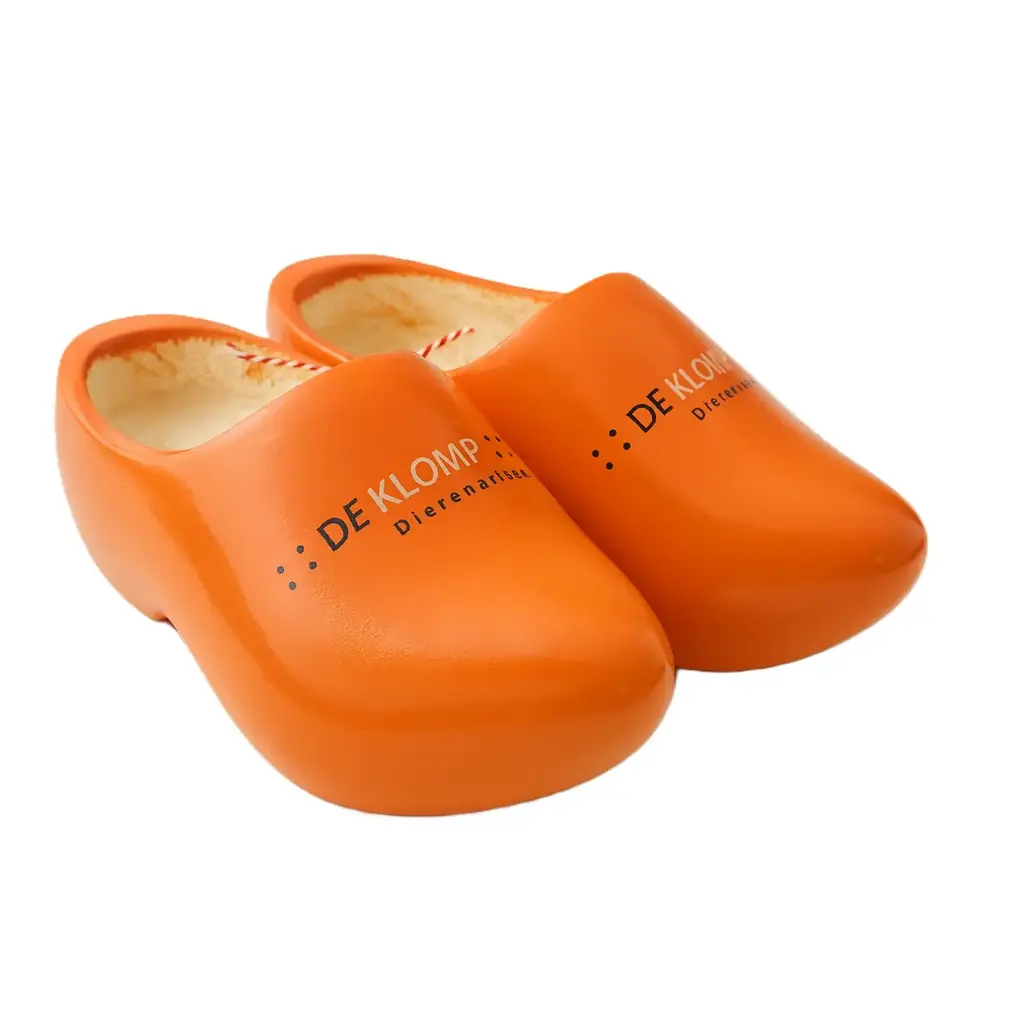 Leuke klompen met logo. Zelfs in oranje leverbaar.