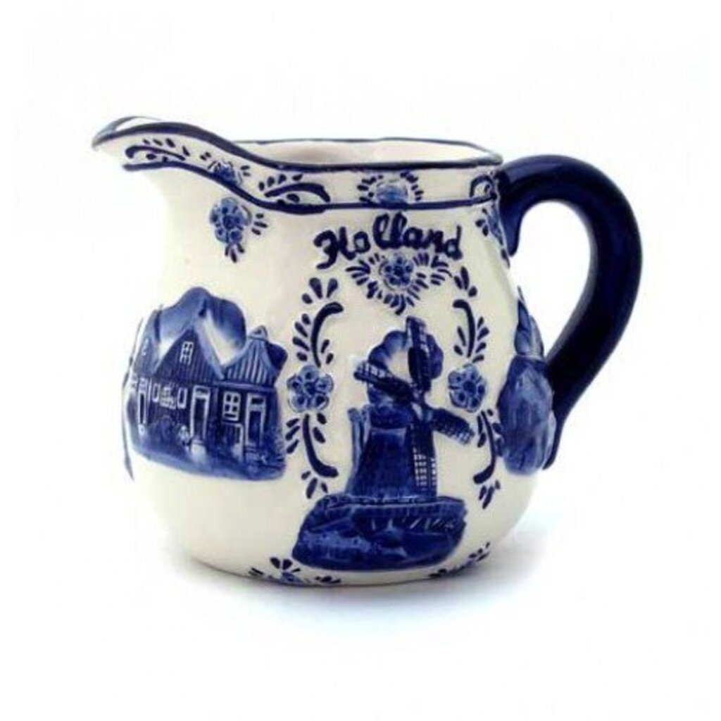 Originele Delfts Blauwe melkkan met Hollandse afbeelding