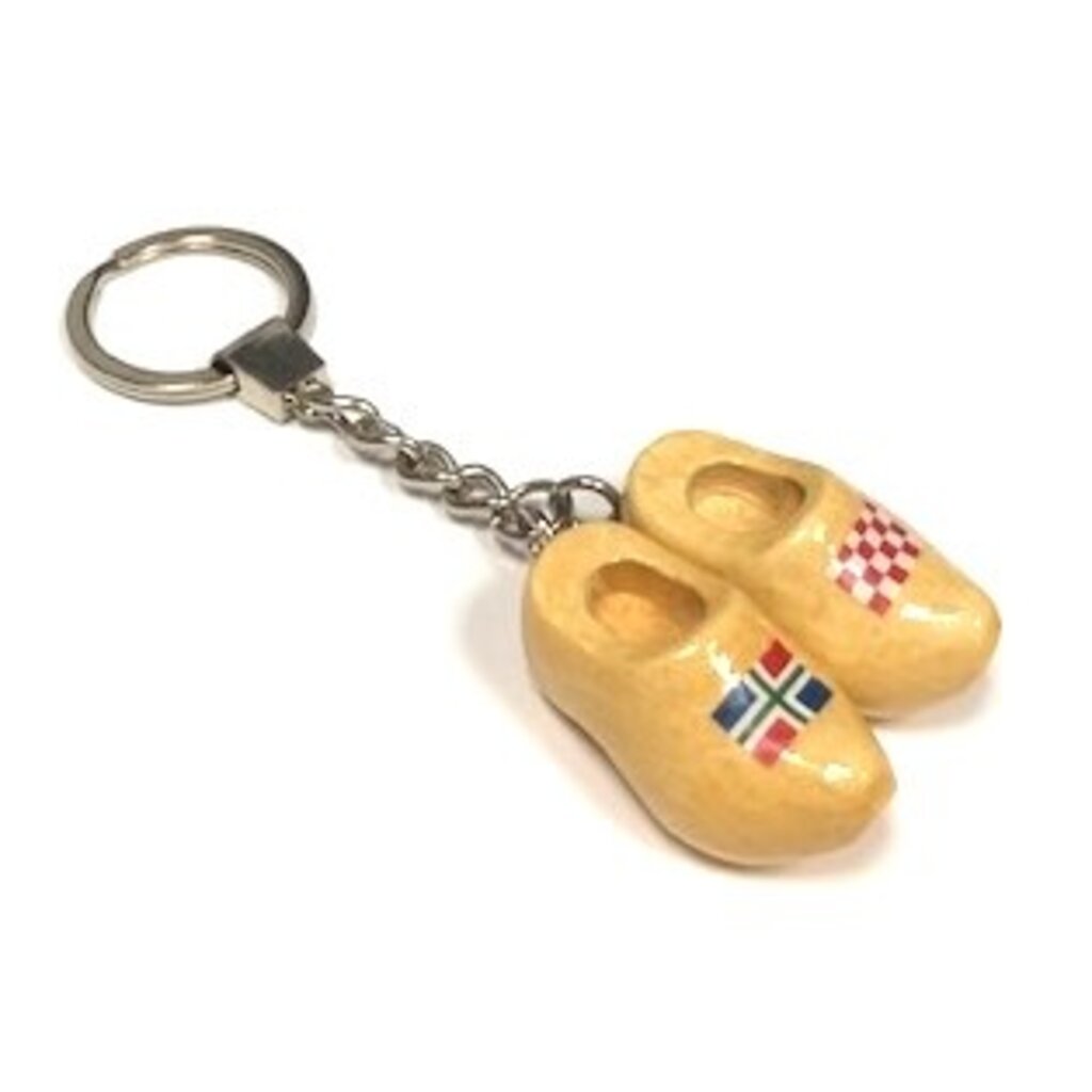 Een sleutelhanger met 2 klompjes voorzien van een vlag van een land of provincie naar eigen keuze. Ze zijn leverbaar in vele kleuren. Tijdens het bestel proces kunt u aangeven welke vlaggen wij erop moeten maken. Daarna worden ze nog voorzien van een laklaag ter bescherming van de vlag.