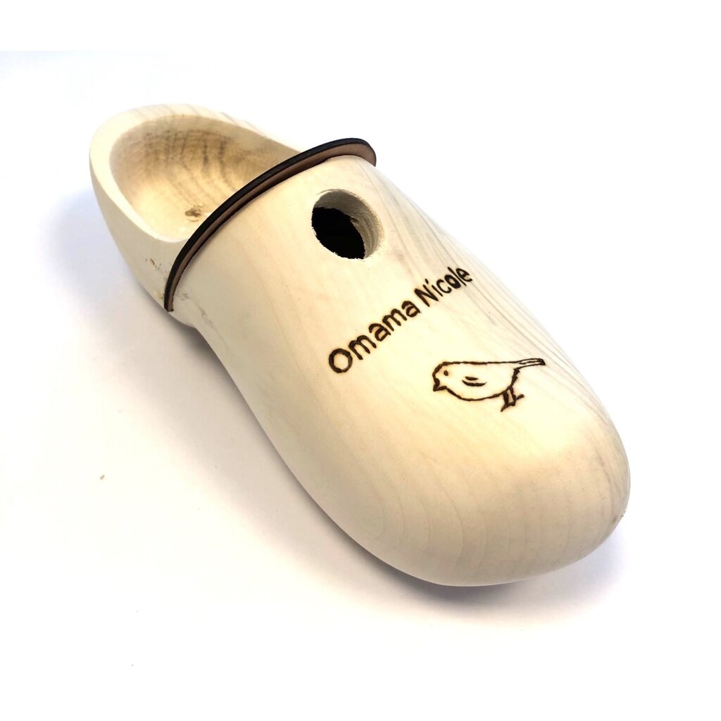 Ze worden op bestelling gemaakt en voorzien van een door u aangeleverde tekst. Er kunnen 15 tekens op de klomp aangebracht worden.De prijs is per stuk!