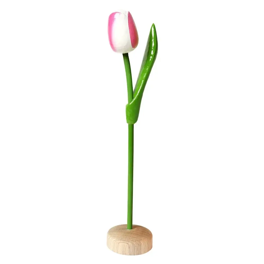 Wit - roze houten tulp op een voet 35cm